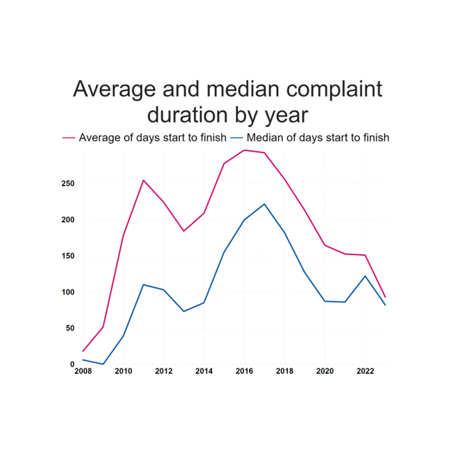 Average and median complaint duration by year