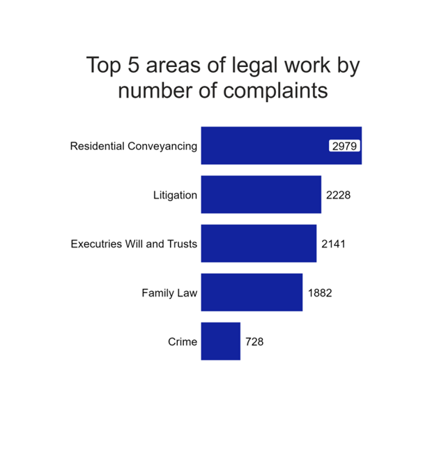 These are the top 5 areas of legal work by the number of complaints we received.