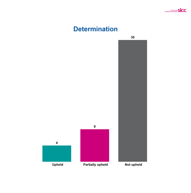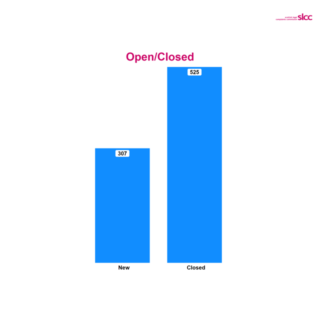 The resolved category includes complaints resolved by the actions of an SLCC investigator before a formal decision to accept or reject the complaint. This includes where the complainer agrees or doesn’t respond to the investigators initial view on the complaint.