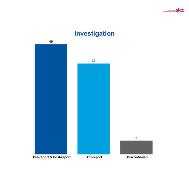 Finally, some complaints are withdrawn by the complainer at investigation or discontinued by the SLCC due to lack of response from the complainer.